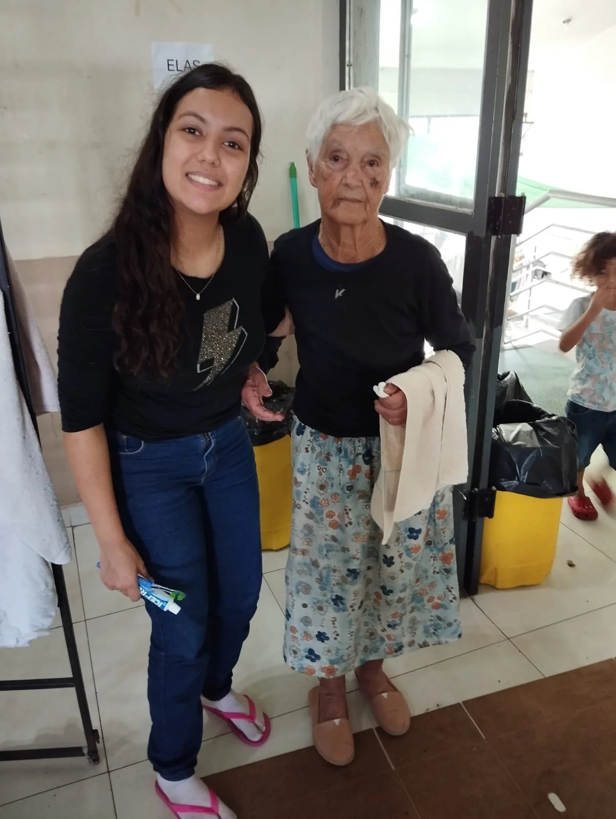 Ricardo and Marcia's 16 year old daughter, Mariana sharing love and compassion to those at the shelter.